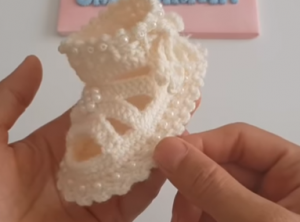 Boncuklu Beyaz Kız Bebek Patik Modeli Yapılışı
